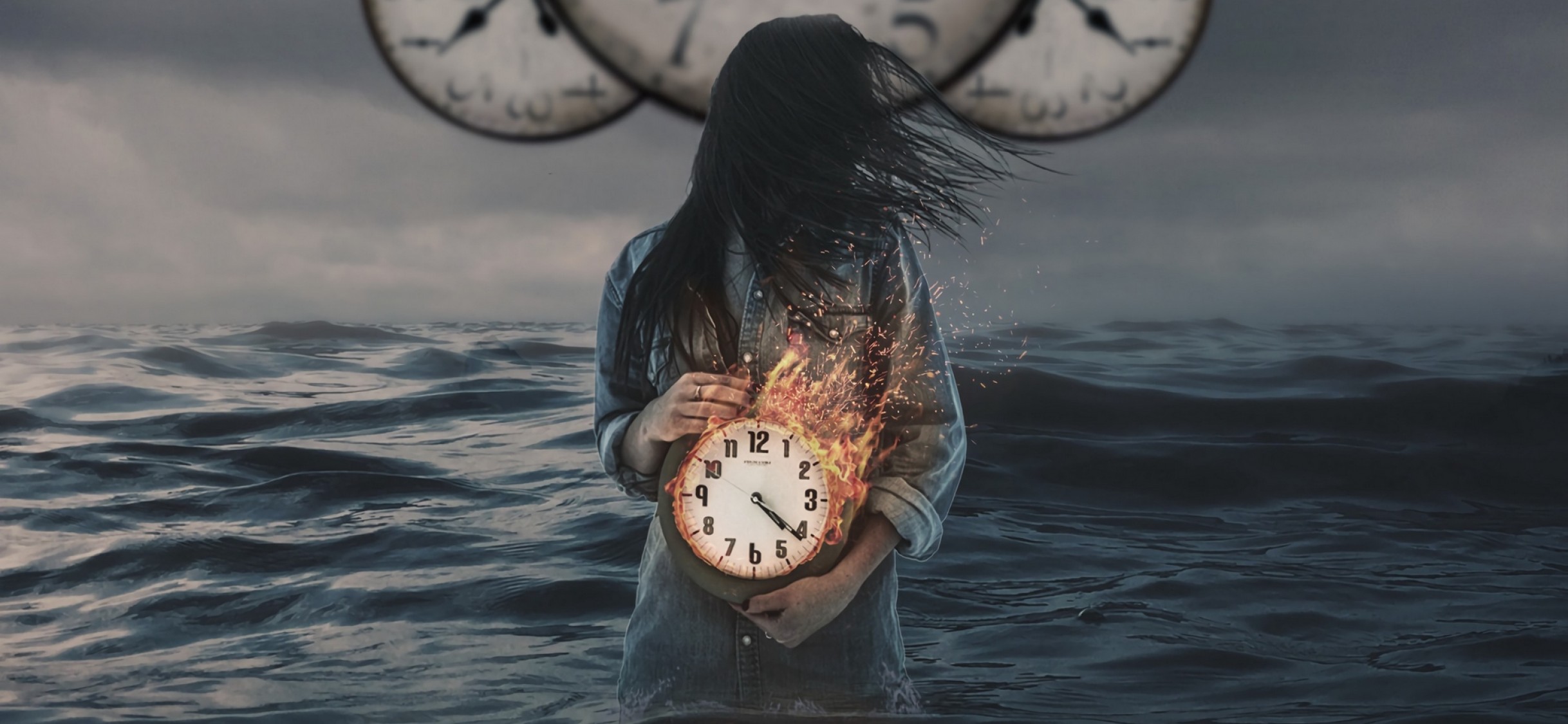 Girl with a clock inside the sea HD Wallpaper - iPhone X