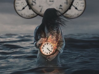 Girl with a clock inside the sea HD Wallpaper - 320x240