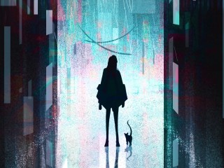 Girl's silhouette next to a building HD Wallpaper - 320x240