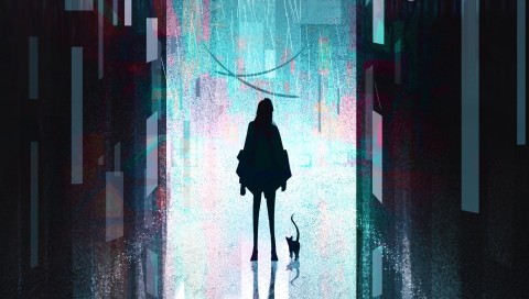 Girl's silhouette next to a building HD Wallpaper - 480x272 PSP