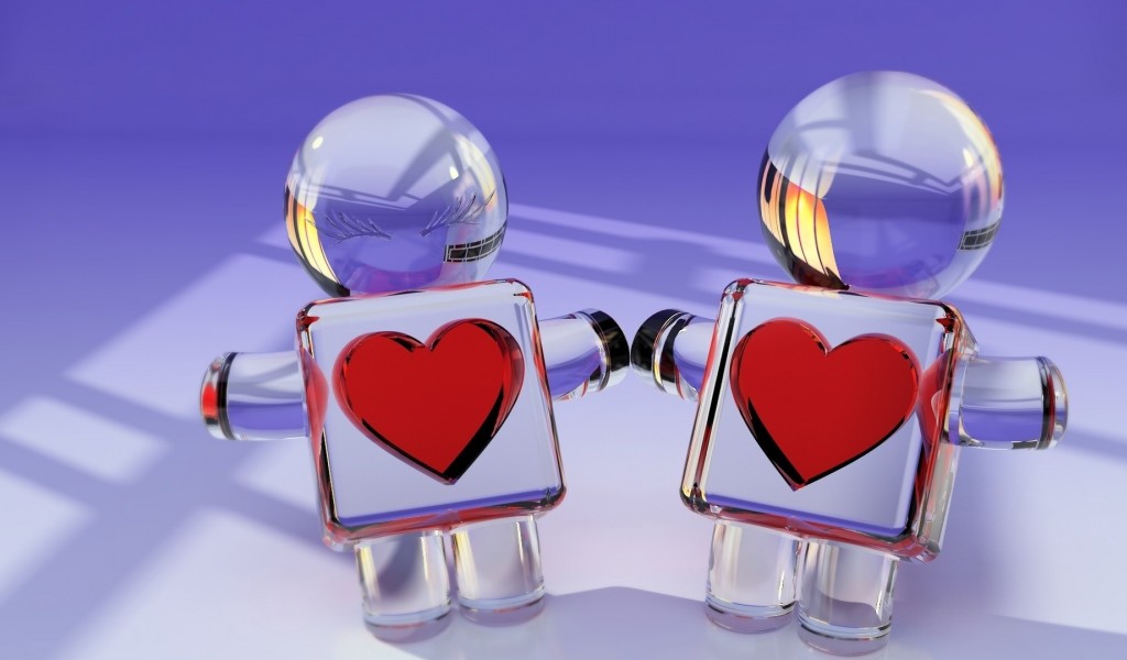 Glass couple toy holding hearts HD Wallpaper - 1024x600