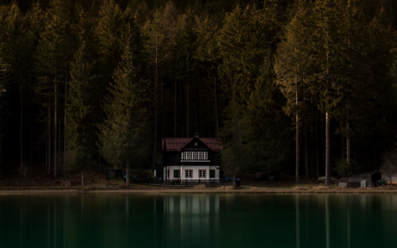 Gllomy house near the lake HD Wallpaper - 1280x800