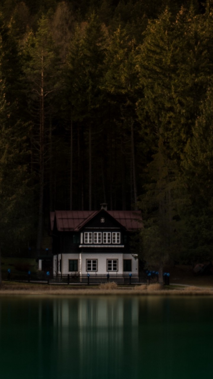 Gllomy house near the lake HD Wallpaper - 720x1280