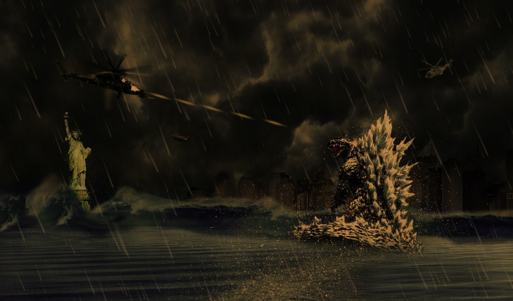 Godzilla Rises and Unleashes His Atomic Breath HD Wallpaper - 1024x600