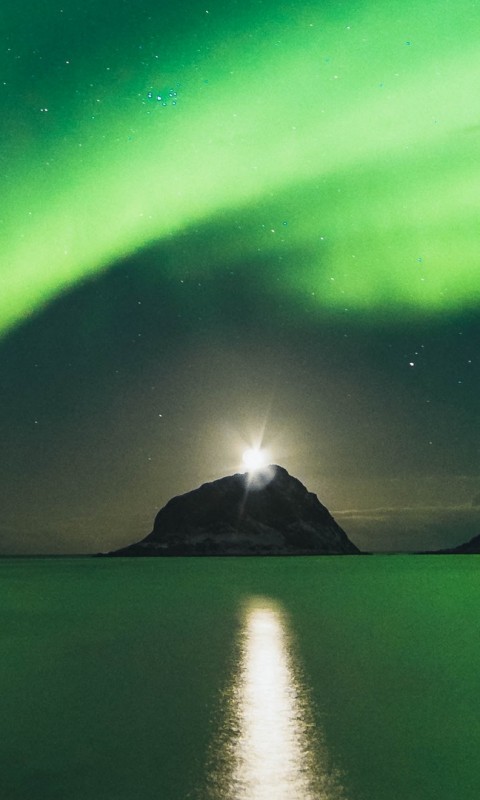 Green aurora over the mountains HD Wallpaper - 480x800