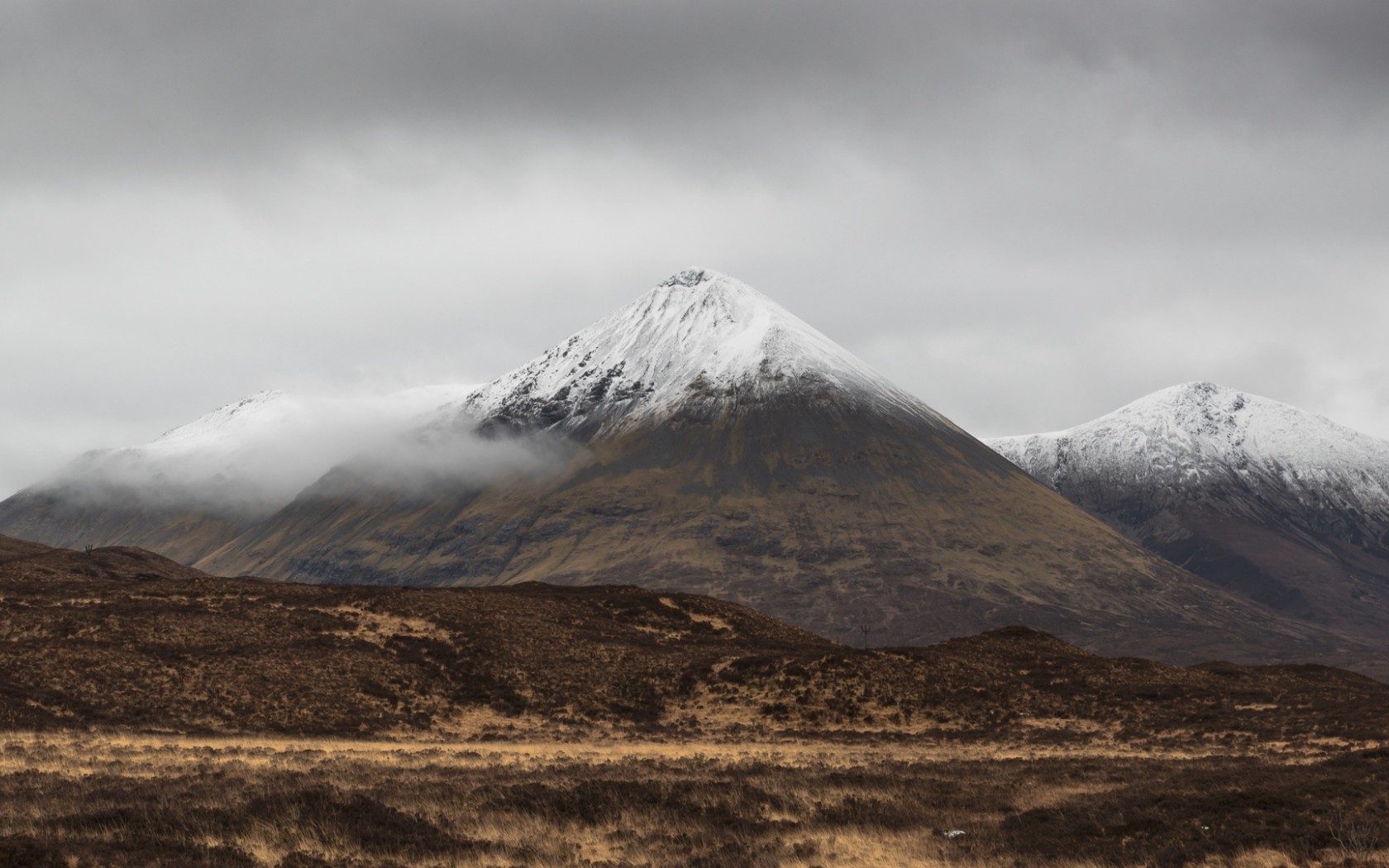 Grey clouds over snowy mountains HD Wallpaper - 1680x1050