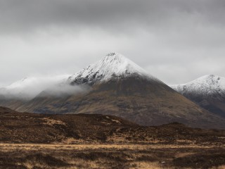 Grey clouds over snowy mountains HD Wallpaper - 320x240