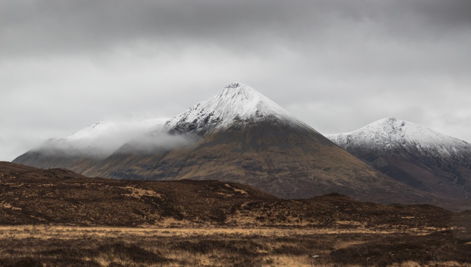 Grey clouds over snowy mountains HD Wallpaper - 960x544 PS Vita