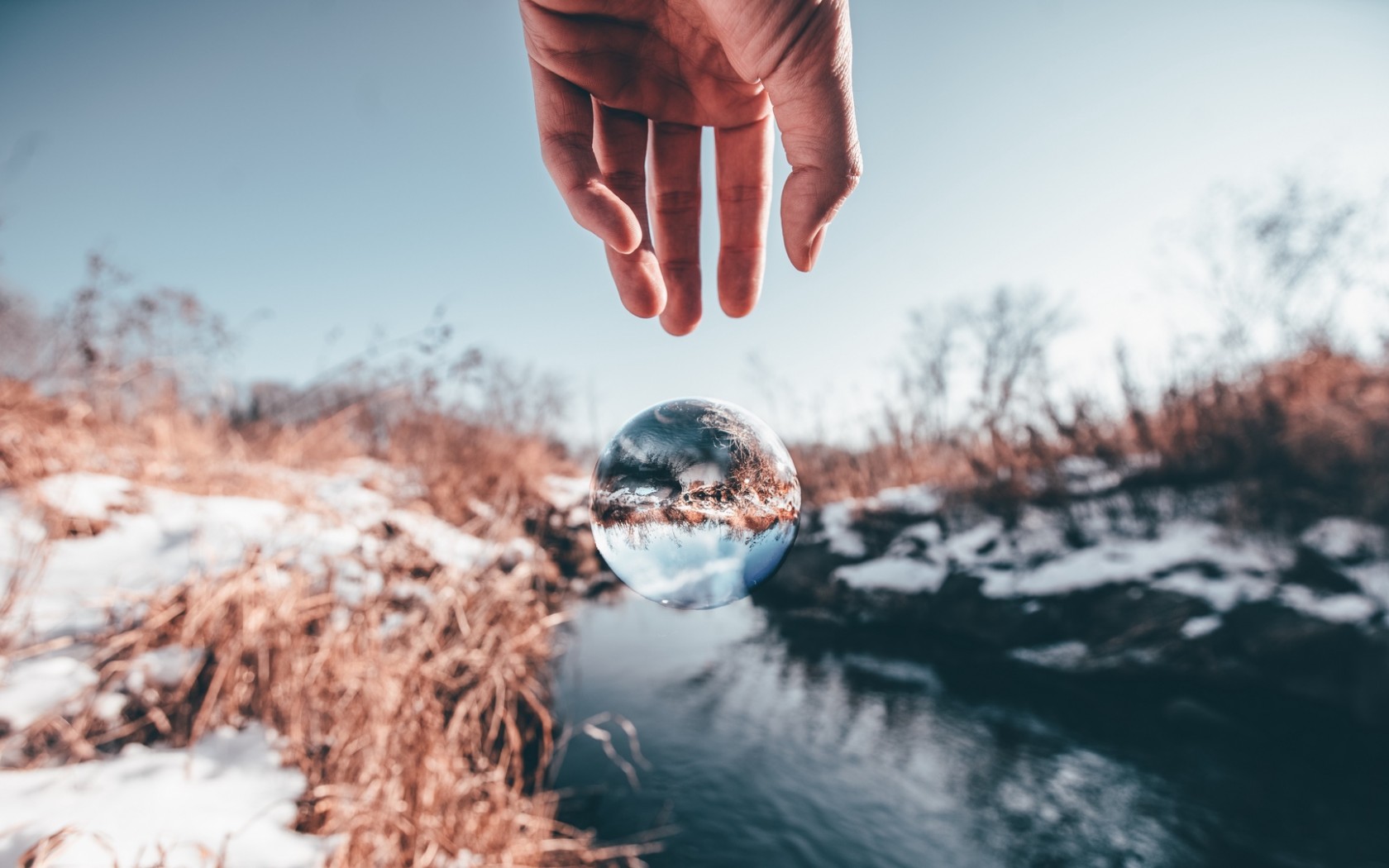 Hand trying to reach a transparent ball HD Wallpaper - 1680x1050