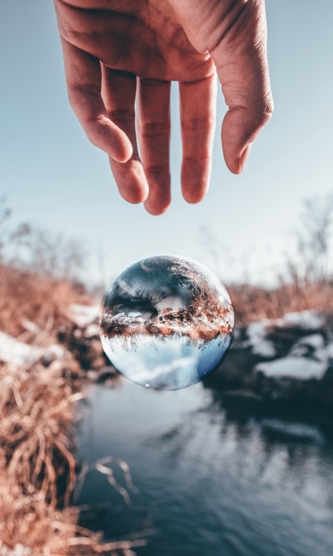 Hand trying to reach a transparent ball HD Wallpaper - 480x800