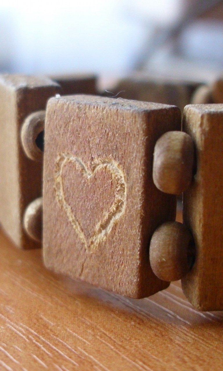 Heart in wooden brachelet HD Wallpaper - 768x1280