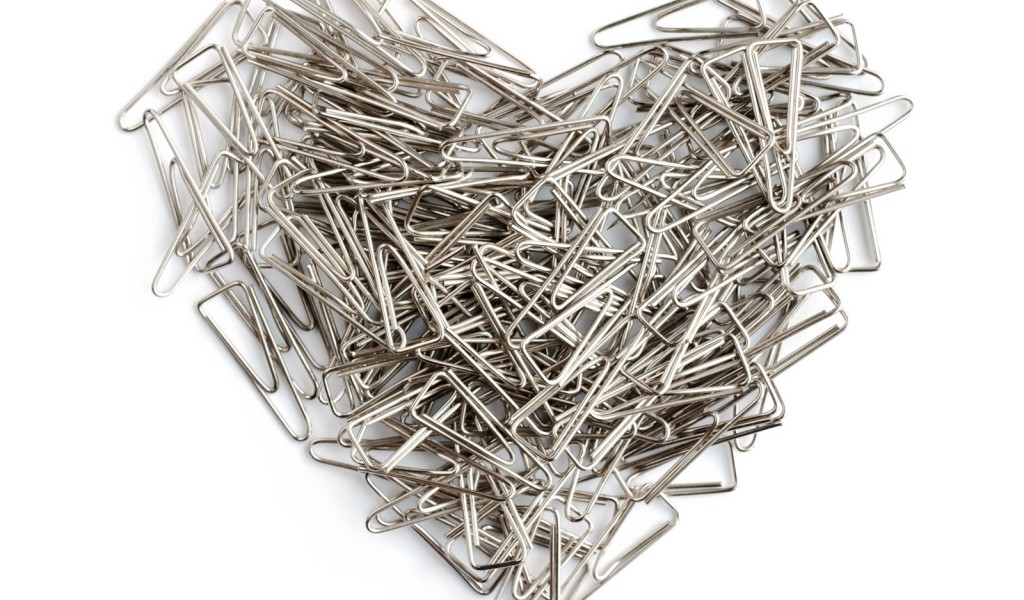 Heart shape of paper clips HD Wallpaper - 1024x600