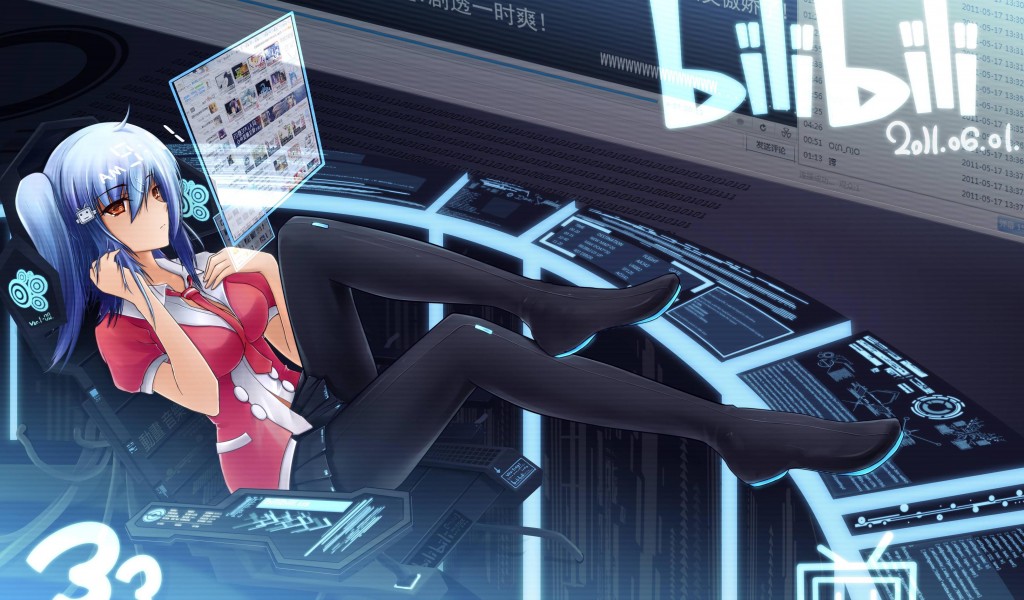 Hot cyber girl long legs blue hair anime art HD wallpaper - 1024x600