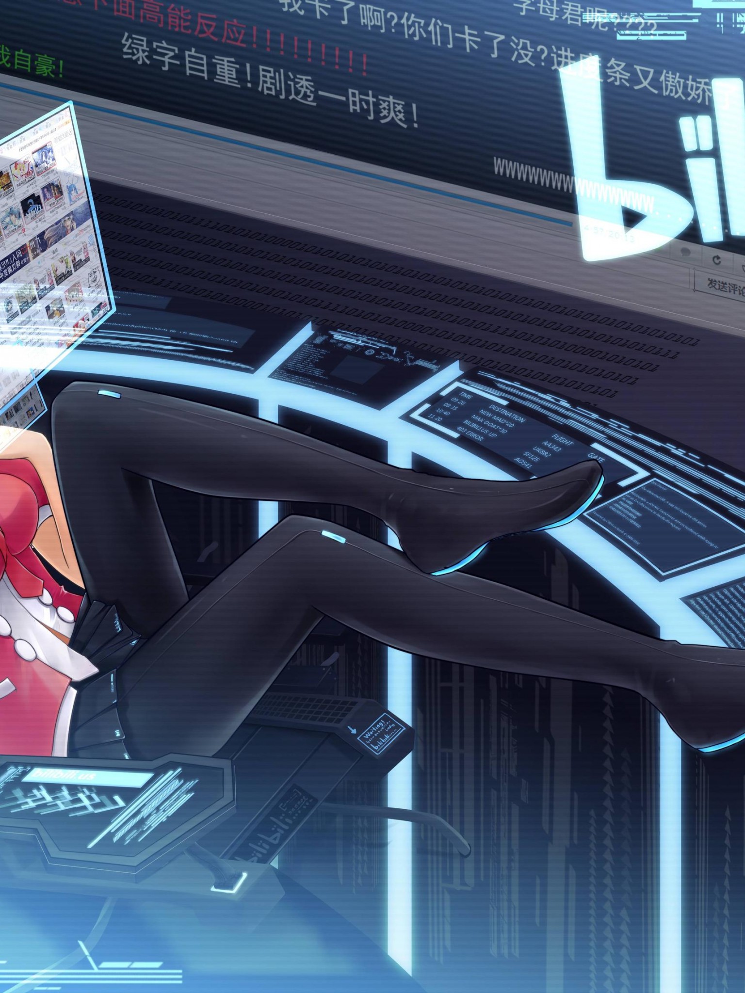Hot cyber girl long legs blue hair anime art HD wallpaper - Retina iPad