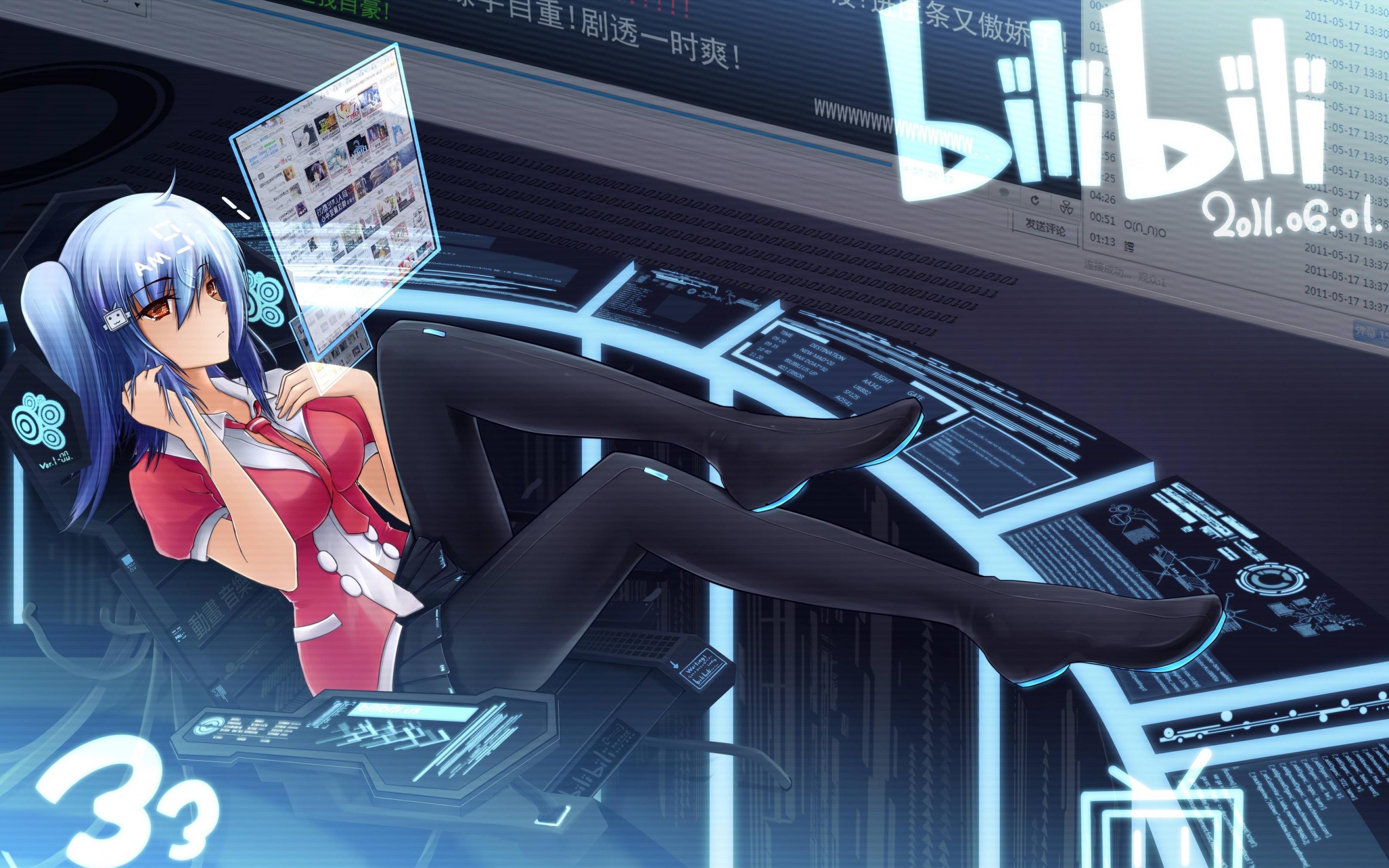 Hot cyber girl long legs blue hair anime art HD wallpaper - 13" Retina Macbook Pro