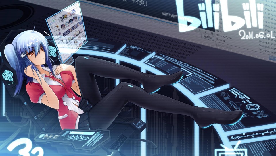 Hot cyber girl long legs blue hair anime art HD wallpaper - 960x544 PS Vita