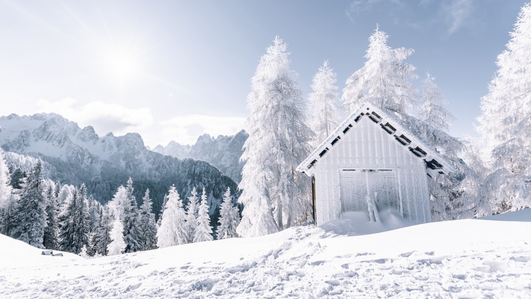 House at a snowy mountain HD Wallpaper - Google Plus Cover Photo