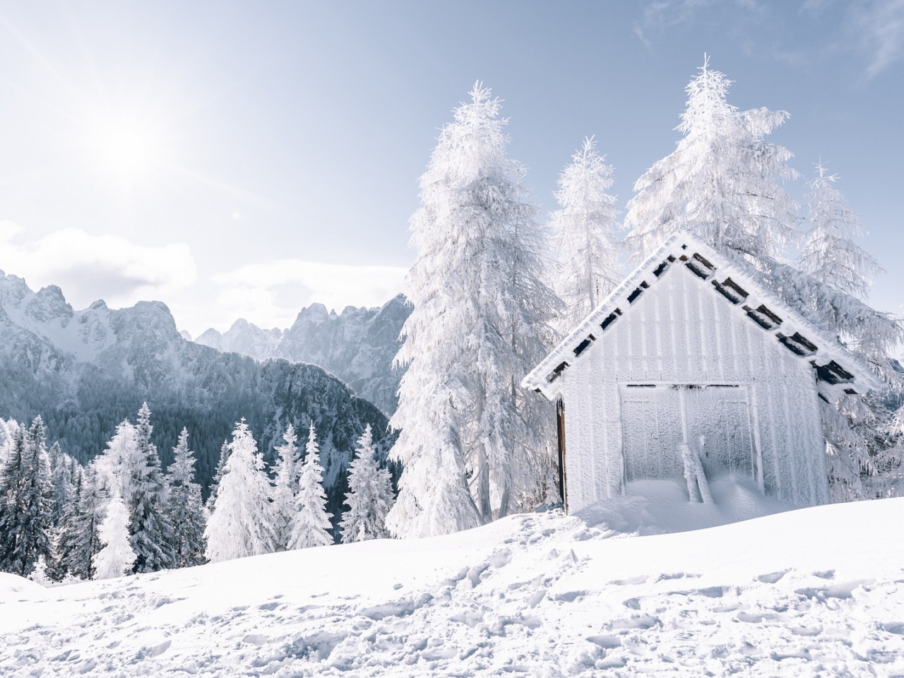House at a snowy mountain HD Wallpaper - 1280x960