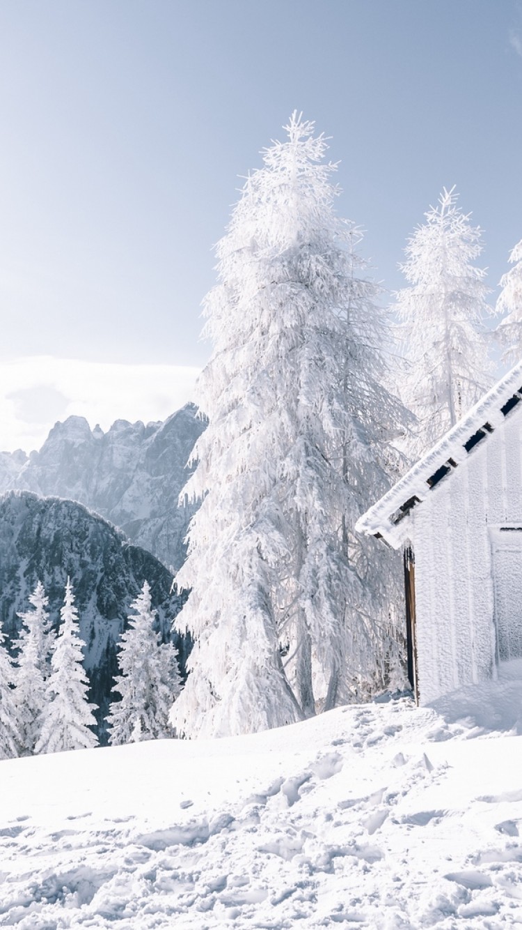 House at a snowy mountain HD Wallpaper - iPhone 6 / 6S