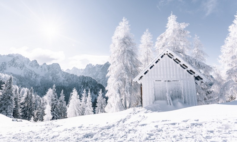 House at a snowy mountain HD Wallpaper - 800x480