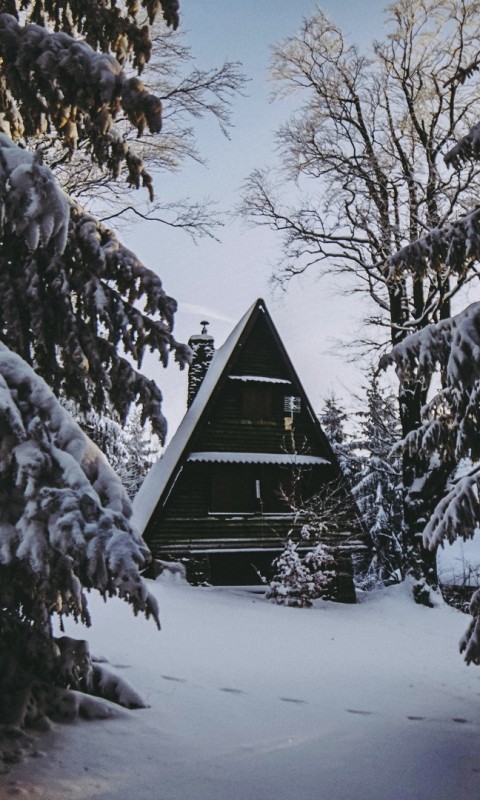 House in the middle of a snowy forest HD Wallpaper - 480x800