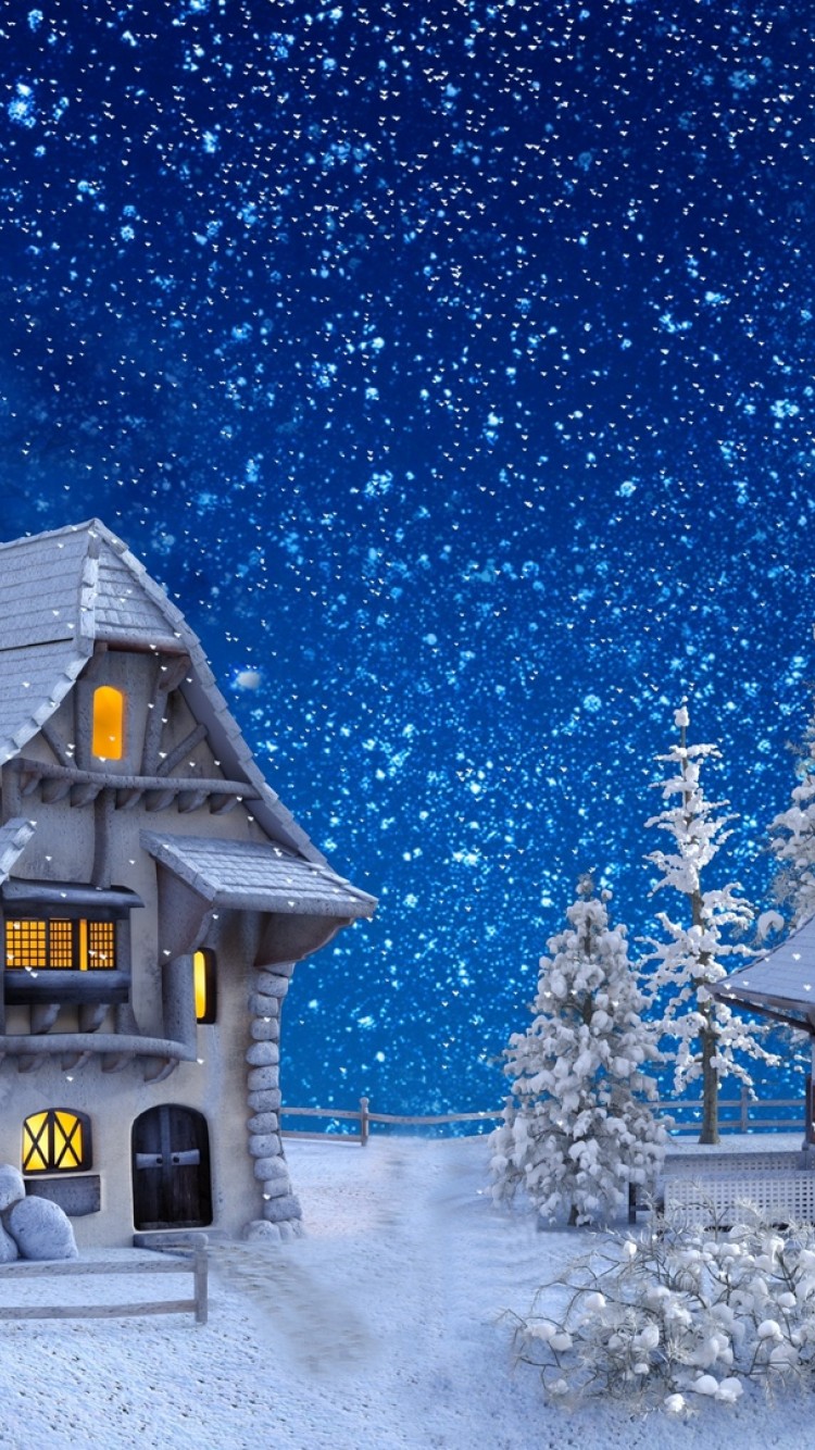 Houses covered in snow painting HD Wallpaper - iPhone 6 / 6S