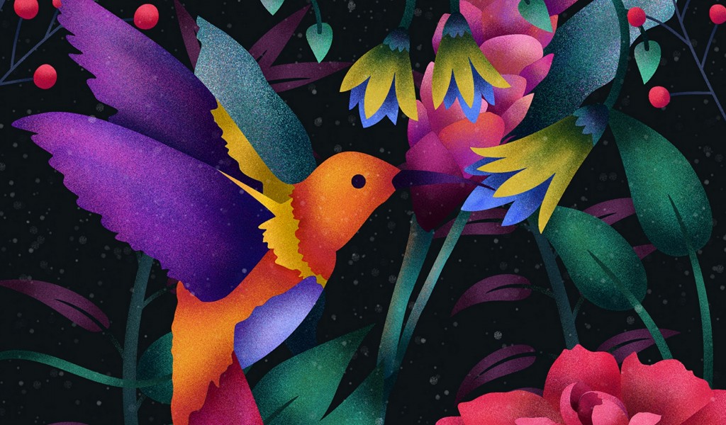 Hummingbird over flowers HD Wallpaper - 1024x600