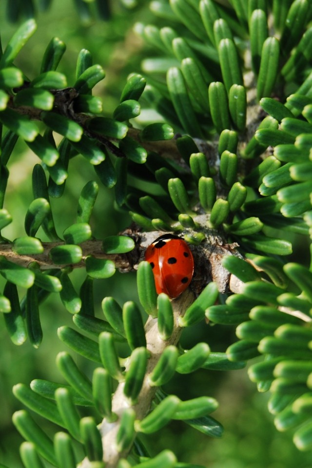 Ladybug walking over branches HD Wallpaper - iPhone 4 / 4S / iPod