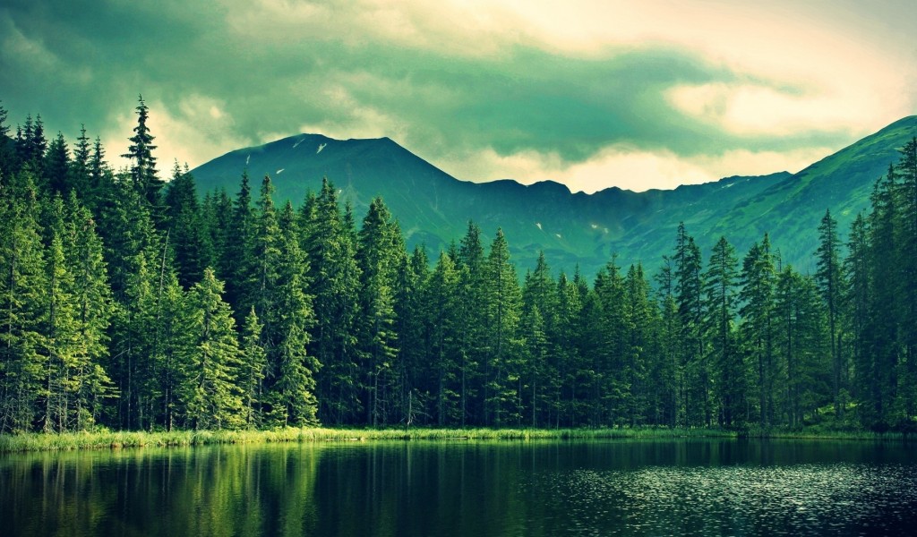 Lake hidden in the forest HD Wallpaper - 1024x600