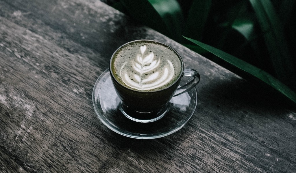 Leaf pattern on coffee foam HD Wallpaper - 1024x600