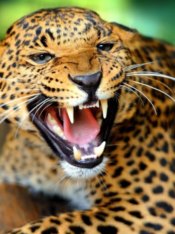 Leopard Showing Teeth Wallpaper for Desktop and Mobiles - 360x480
