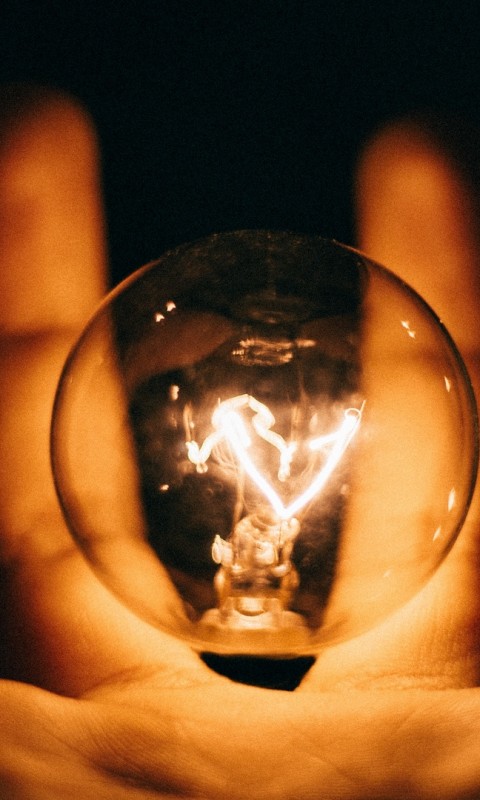 Light bulb standing on palm HD Wallpaper - 480x800