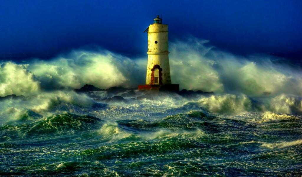 Lighthouse light during sea storm HD Wallpaper - 1024x600