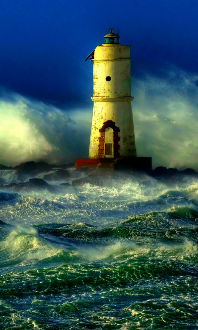 Lighthouse light during sea storm HD Wallpaper - 768x1280