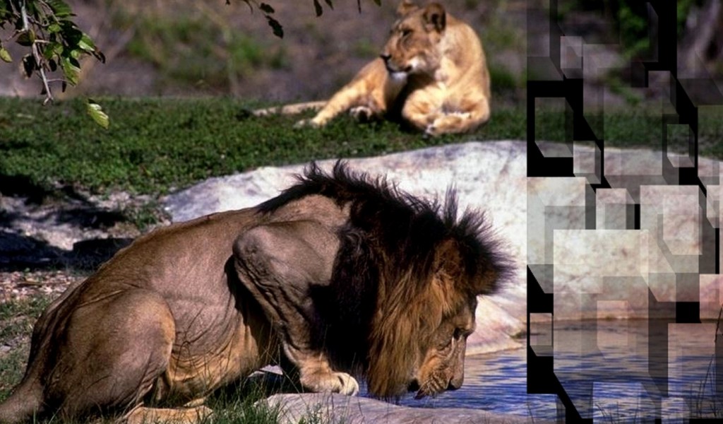 Lion Drinking HD Wallpaper - 1024x600