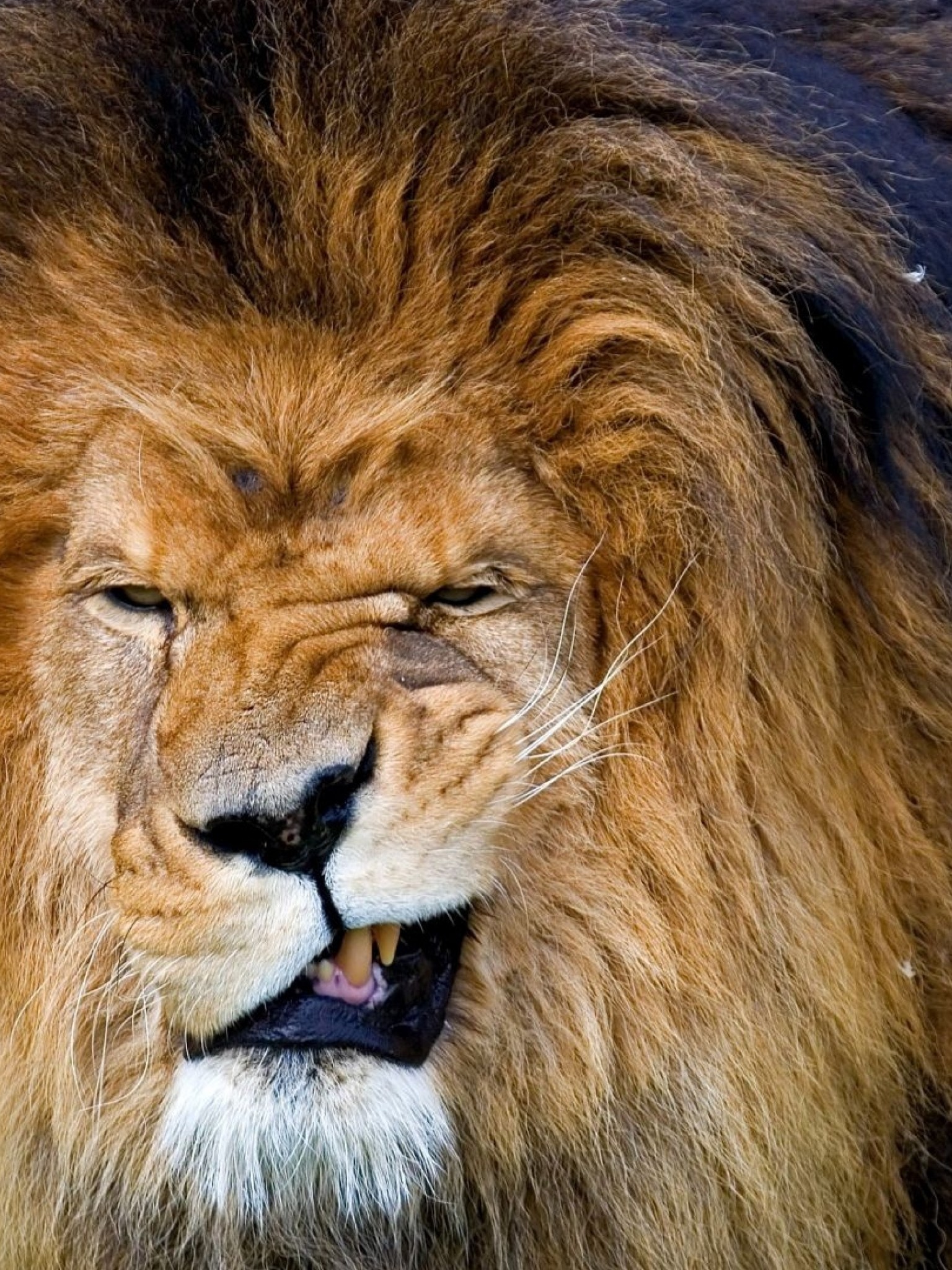 Lion shows its teeth HD Wallpaper - Retina iPad