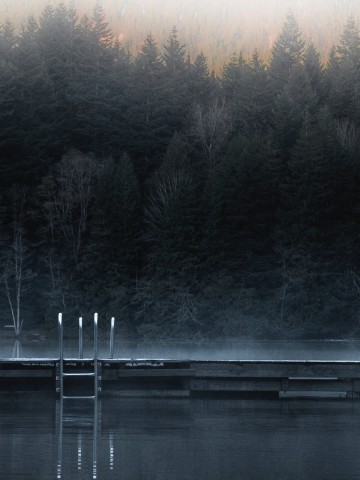 Lonely figure at a foggy pier HD Wallpaper - 360x480