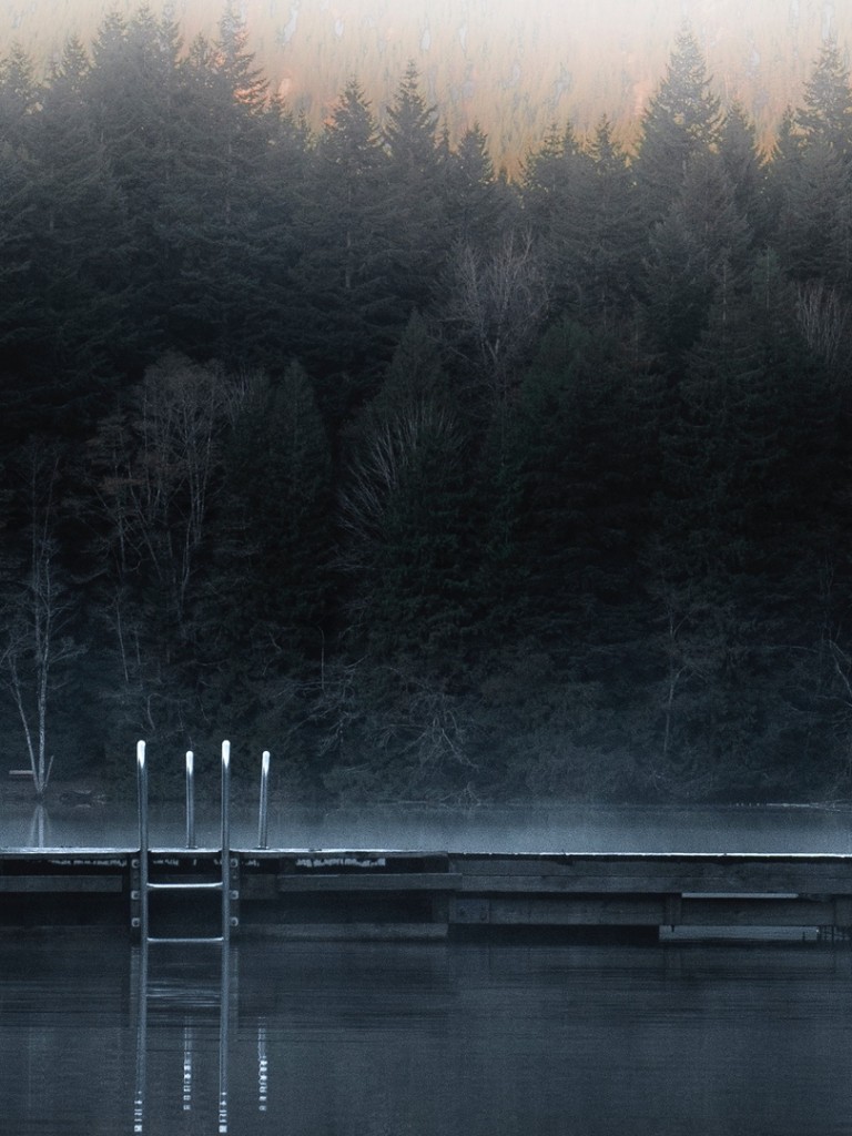Lonely figure at a foggy pier HD Wallpaper - Non-retina iPad