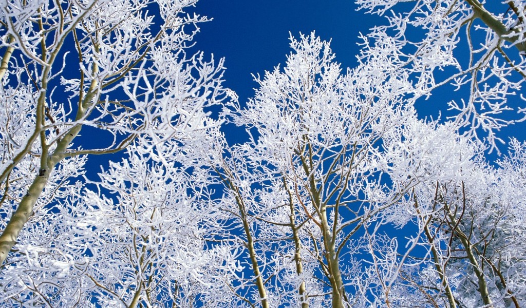 Looking Up at the Winter Trees HD Wallpaper - 1024x600