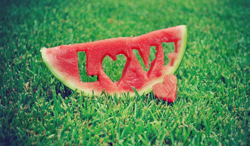 Love carved into a slice of watermelon HD Wallpaper - 1024x600
