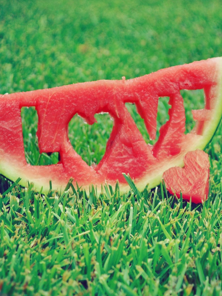 Love carved into a slice of watermelon HD Wallpaper - Non-retina iPad