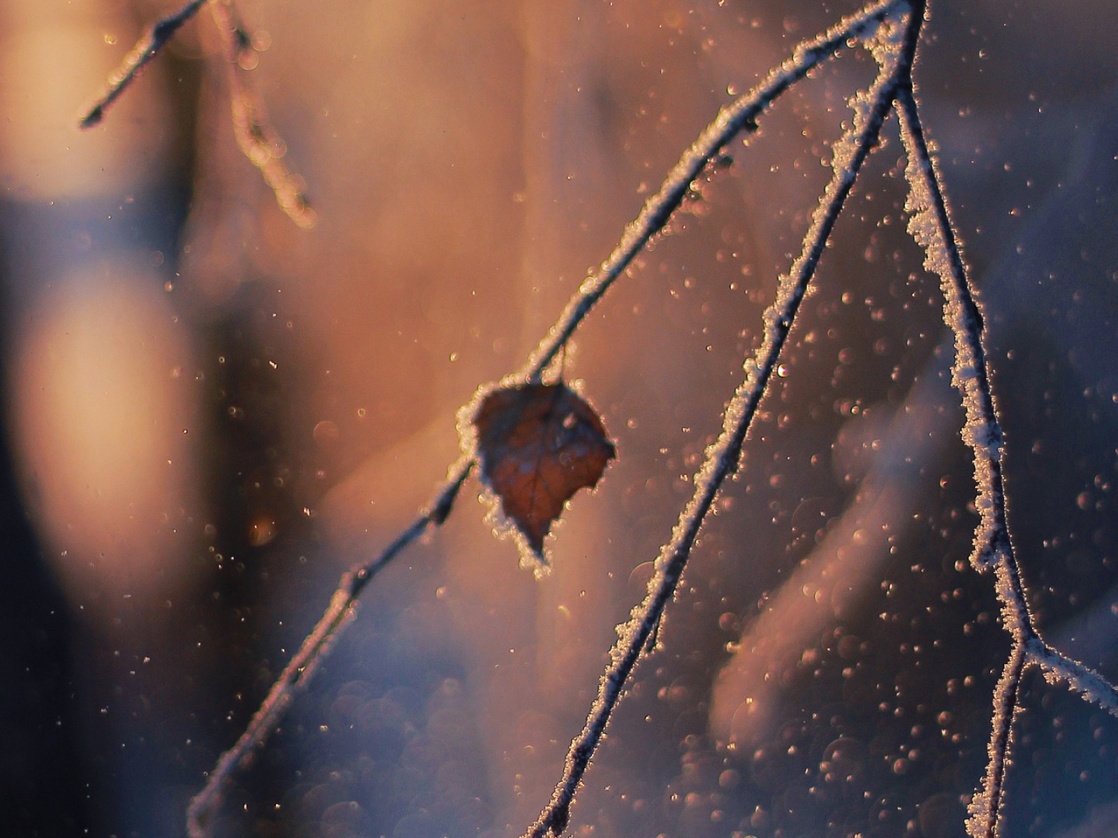 Macro image of a leaf at snow HD Wallpaper - 1600x1200