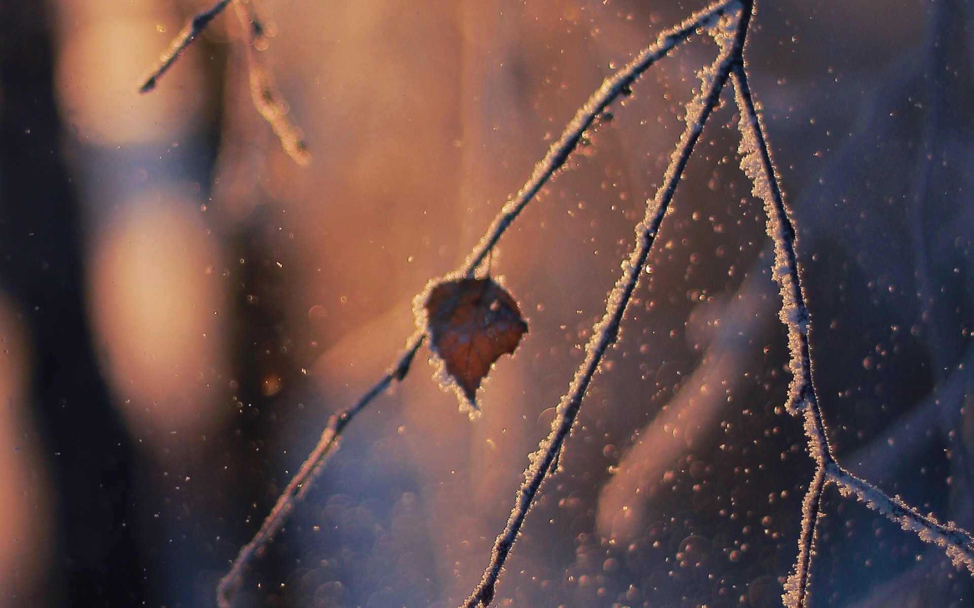 Macro image of a leaf at snow HD Wallpaper - 1920x1200