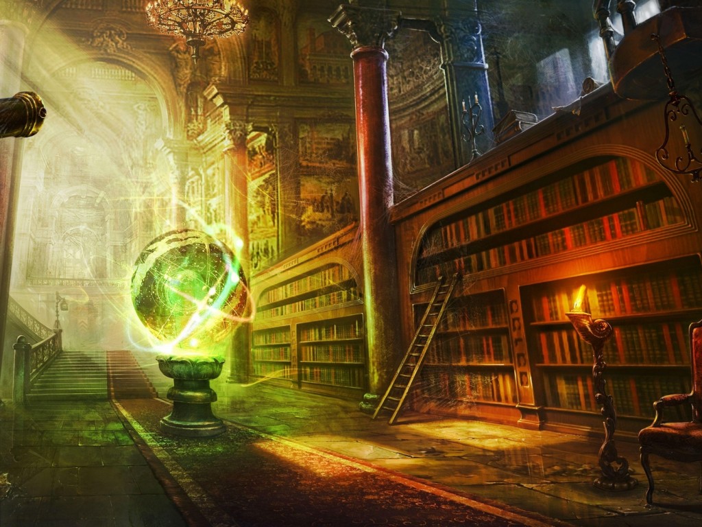 Magic ball inside library HD Wallpaper - 1024x768