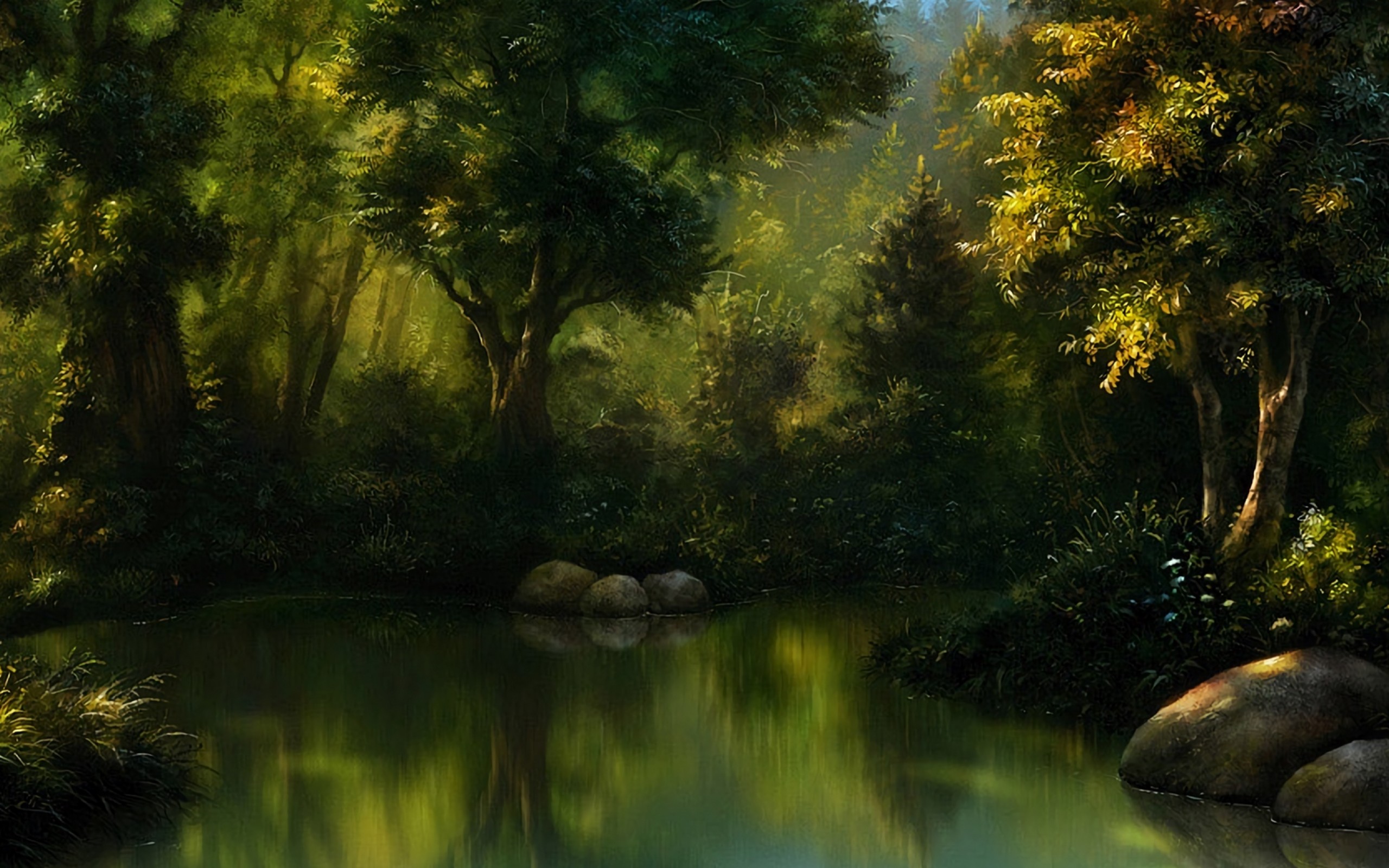 Magical lake at the midlle of the forest HD Wallpaper - 13" Retina Macbook Pro