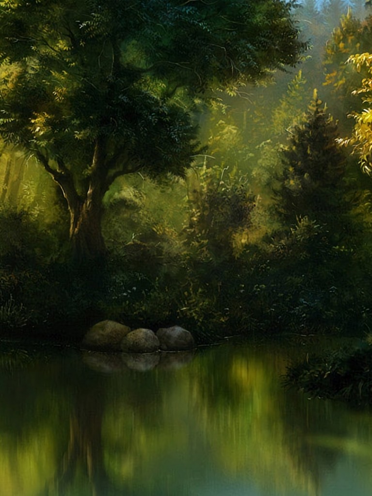 Magical lake at the midlle of the forest HD Wallpaper - Non-retina iPad