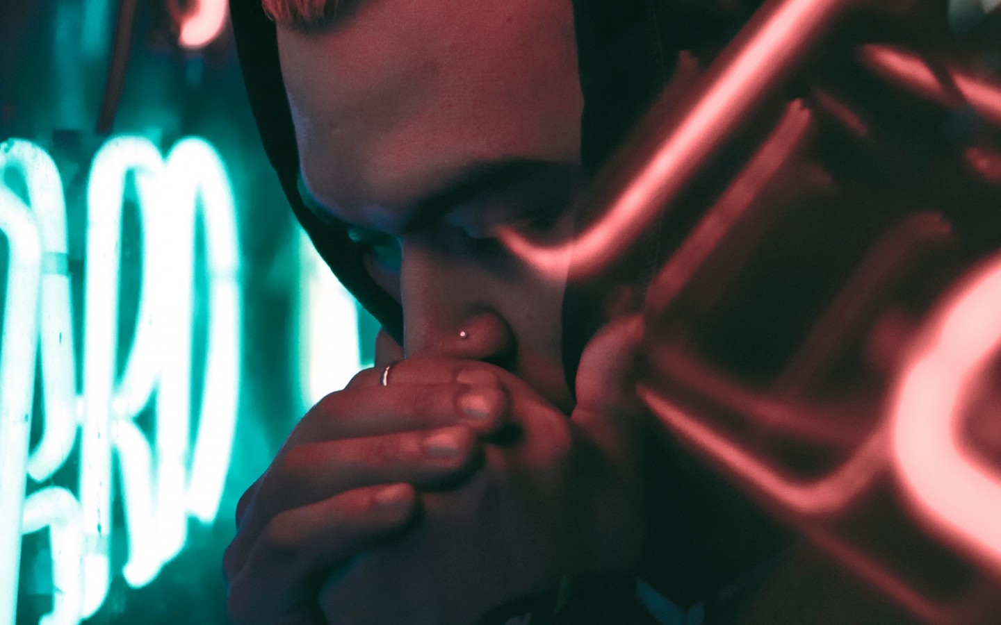 Man behind neon sign HD Wallpaper - 1440x900