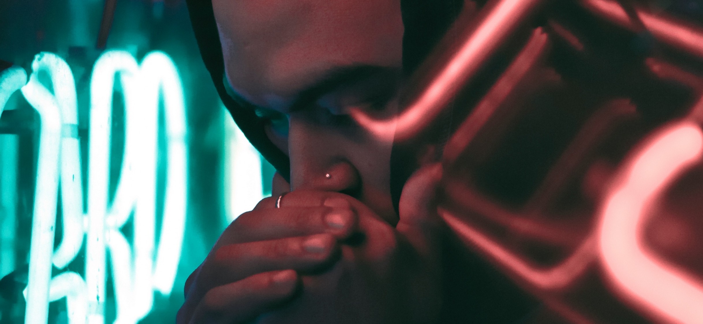 Man behind neon sign HD Wallpaper - iPhone X