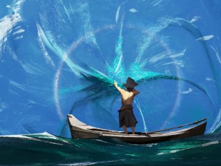 Man on a boat at the sea HD Wallpaper - 320x240