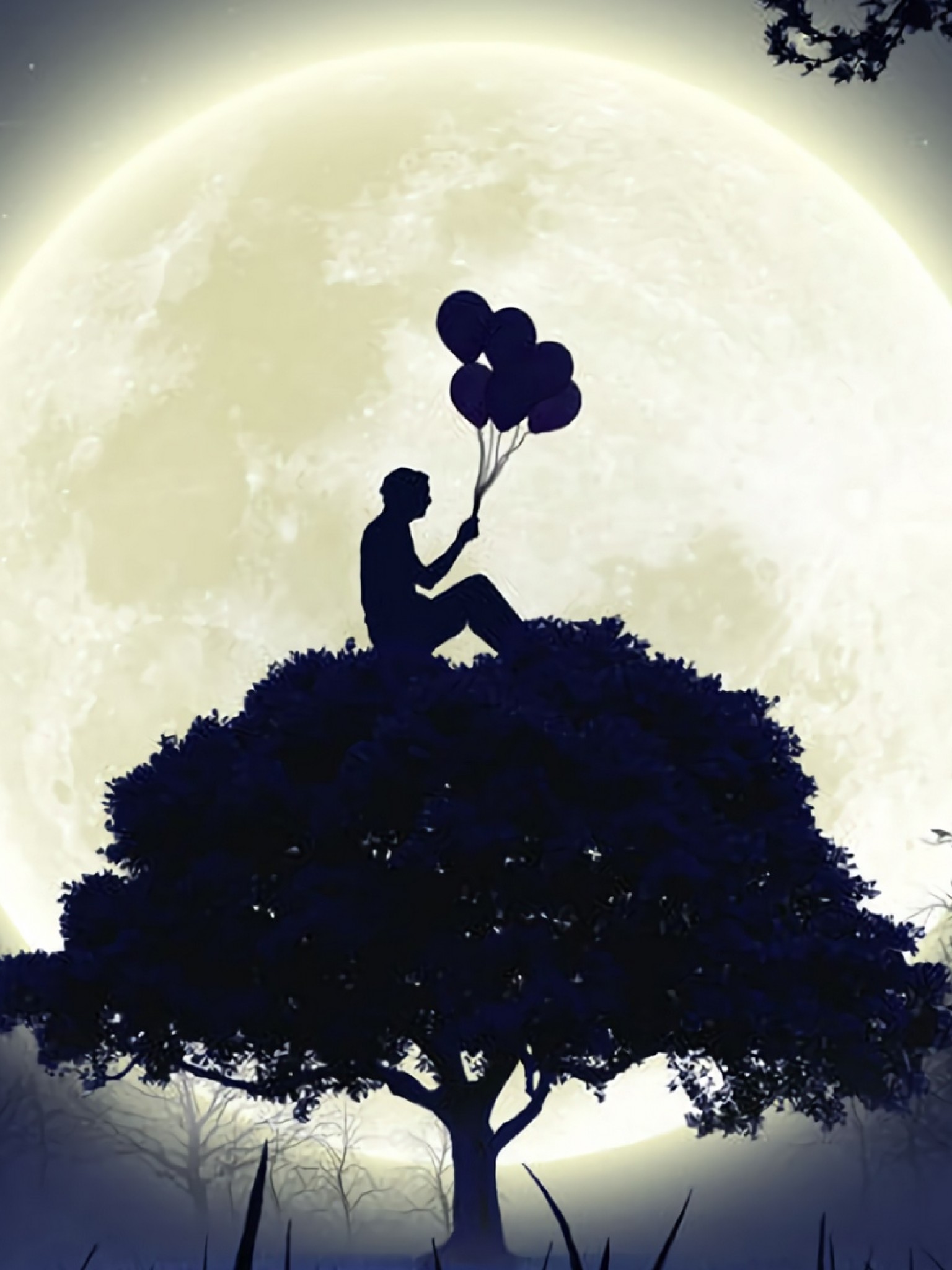Man sitting on a tree with ballons on his hand HD Wallpaper - Retina iPad